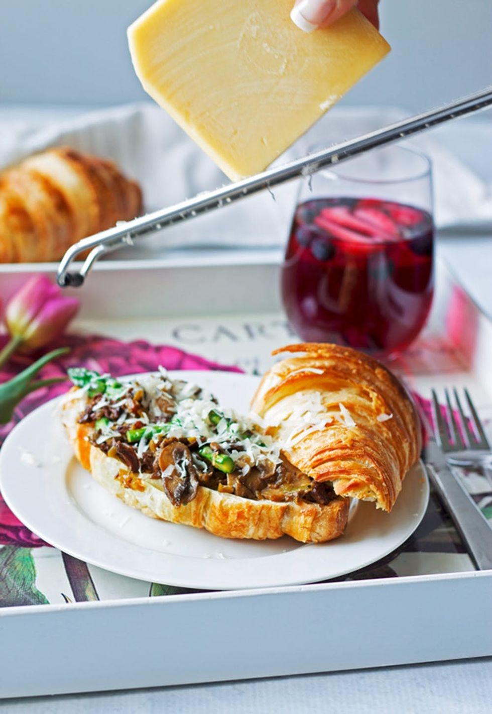6. Set Your Menu: For an easy brunch menu, stick to the basics, like these mushroom croissants that pair well with all the fixings for an omelet. (via Cooks with Cocktails)