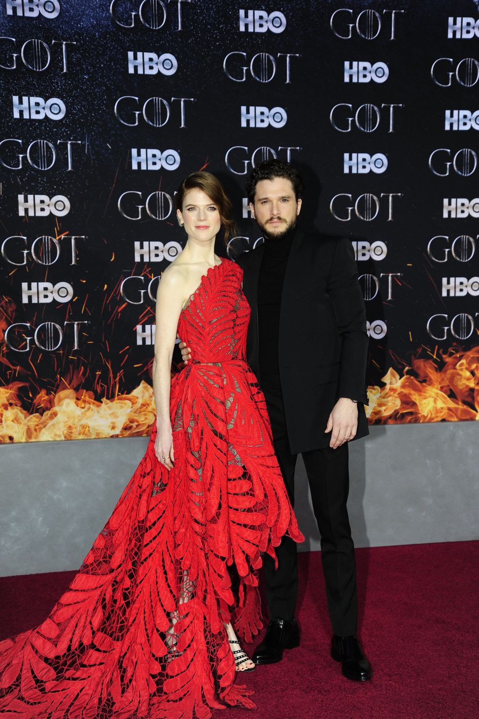 Rose Leslie and Kit Harrington: In Oscar de la Renta and Givenchy suit. (Photo via Paul Bruinooge/Patrick McMullan via Getty)