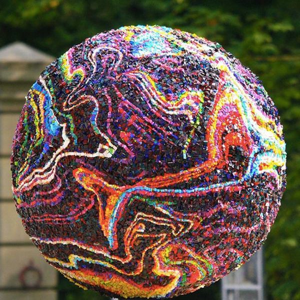 2. Color Burst Globe: Every gardener knows that color is your BFF when it comes to landscaping. Bring a vibrant touch to your ultra-green garden (minus the work of up-keeping florals) by adding a colorful mosaic as the focal point of your yard. (via Home My Design)