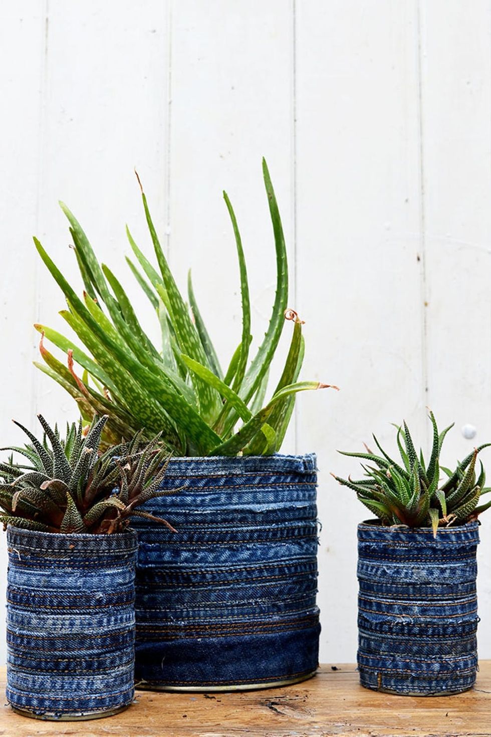 3. Dress up planters with rope and denim. I love a good DIY that involves creatively upcycling or repurposing something that you already own. These denim-wrapped planters are a genius way to use everyday household items to personalize your decor and make it feel special. To make your own, cut strips of denim, wrap and glue them around a paint can, and voila: a one-of-a-kind home for your plants. You can also do this with rope found at the hardware store for a more minimal look. Check out a full tutorial on Pillar Blue Box. (Photo via Pillar Box Blue)