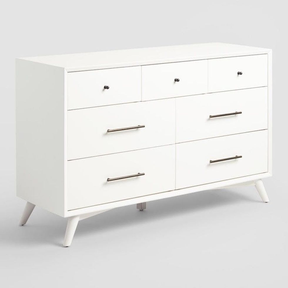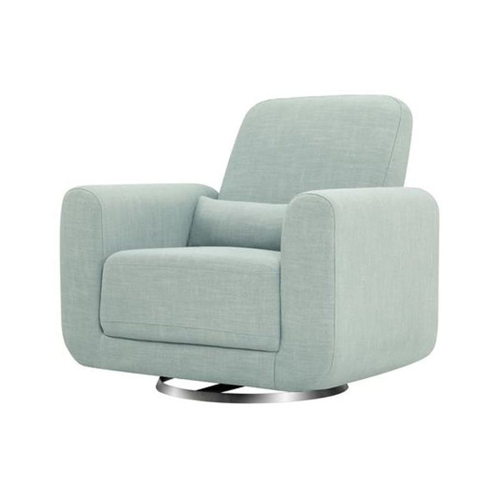My favorite piece of the room is definitely the glider from AllModern. Its mint hue matches the color pops in the jute rug, and the retro-inspired lines pair perfectly with mid-century dresser and modern crib.