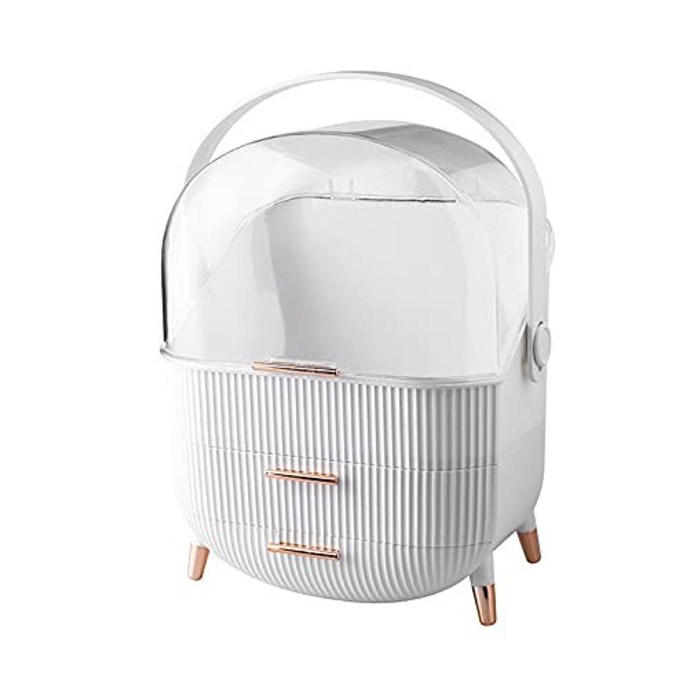Speaking of makeup organization, it's time to go above and beyond the kaboodle. This cosmetics storage has the coolest looking egg shape and will fit tons of items, from skin care to lipstick.