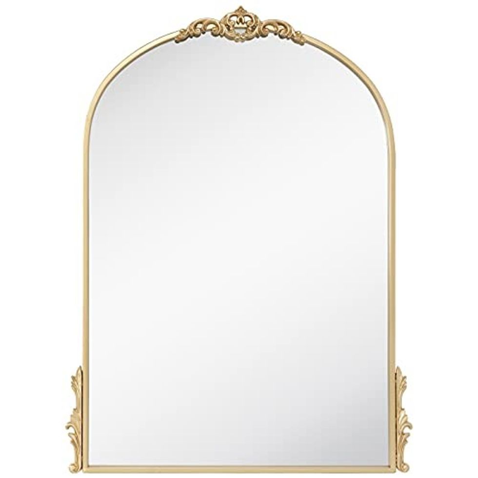 This Hobby Lobby Carved Elegant Gold Arch & Flourish Wall Mirror is an elegant addition to any room. Its intricate design and gold finish makes it perfect for use above the vanity or in living spaces to add a touch of sophistication and luxury.