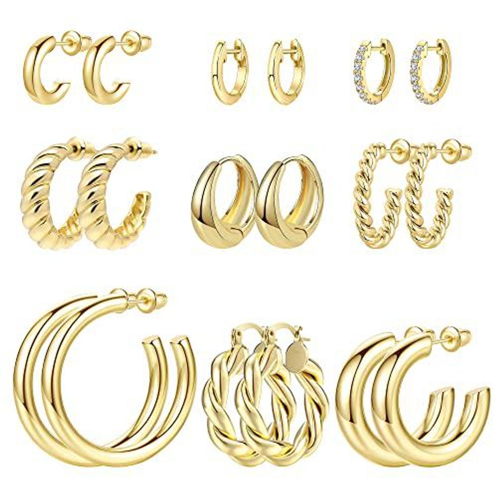 Every "it" girl has a collection of the most adorable, dainty gold jewlery and with this gold hoop earring set you can get a collection of your own going. This set comes with 9 pairs of chunky gold hoops that can be mixed and matched on your ears for a dainty, yet chic look. These top sellers on Amazon are lightweight, easy to attach and remove and comfortable enough to wear all day and night.