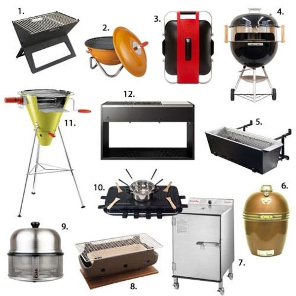 11. Fyrkat BBQ Cone Charcoal Grill ($260): Another colorful Fyrkat from Bodum, this conical grill with stainless steel spit is stylish and ideal for roasting veggies, kebabs, or even an itty bitty cornish game hen.