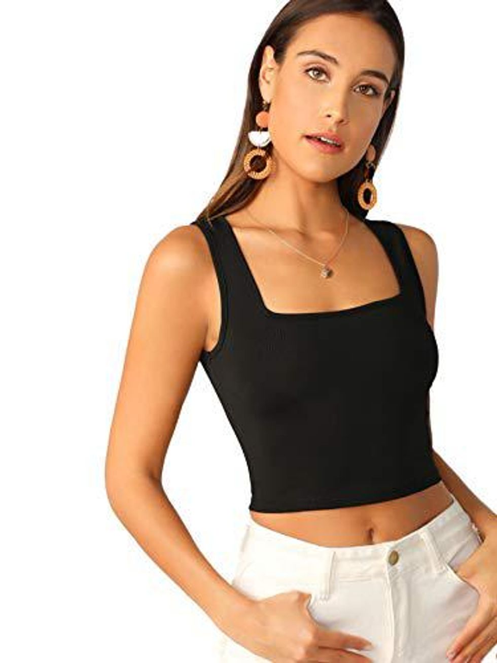 With some inspiration from some of the most viral Tik Tok users, I think it is safe to say that the easiest way to achieve the viral aesthetic is to keep it as simple and basic as possible. This ribbed white tank top can easily be paired with some loose fitted jeans, sneakers and dainty jewelry for a look that will get compliments all day and night. This high neck top is flattering on your chest and will make you look snatched every time.
