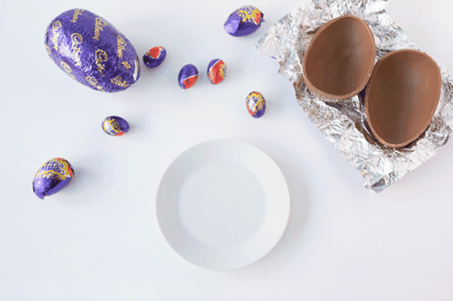 - 1 regular Easter egg, in two halves (the Cadbury variety are usually already split into two halves, so no need to cut and risk breakage)