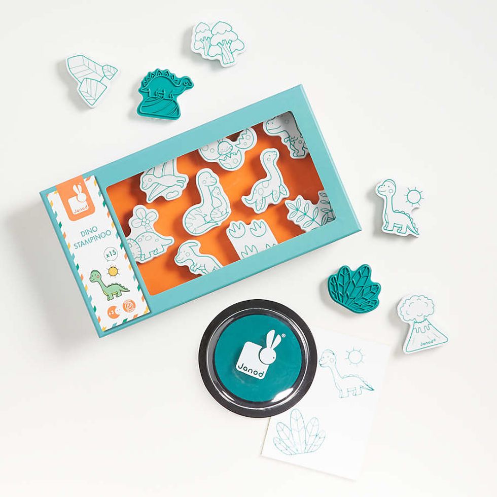 Janod Dinosaur Stamp Kit ($16): Little ones can stamp out a story as they pretend play.