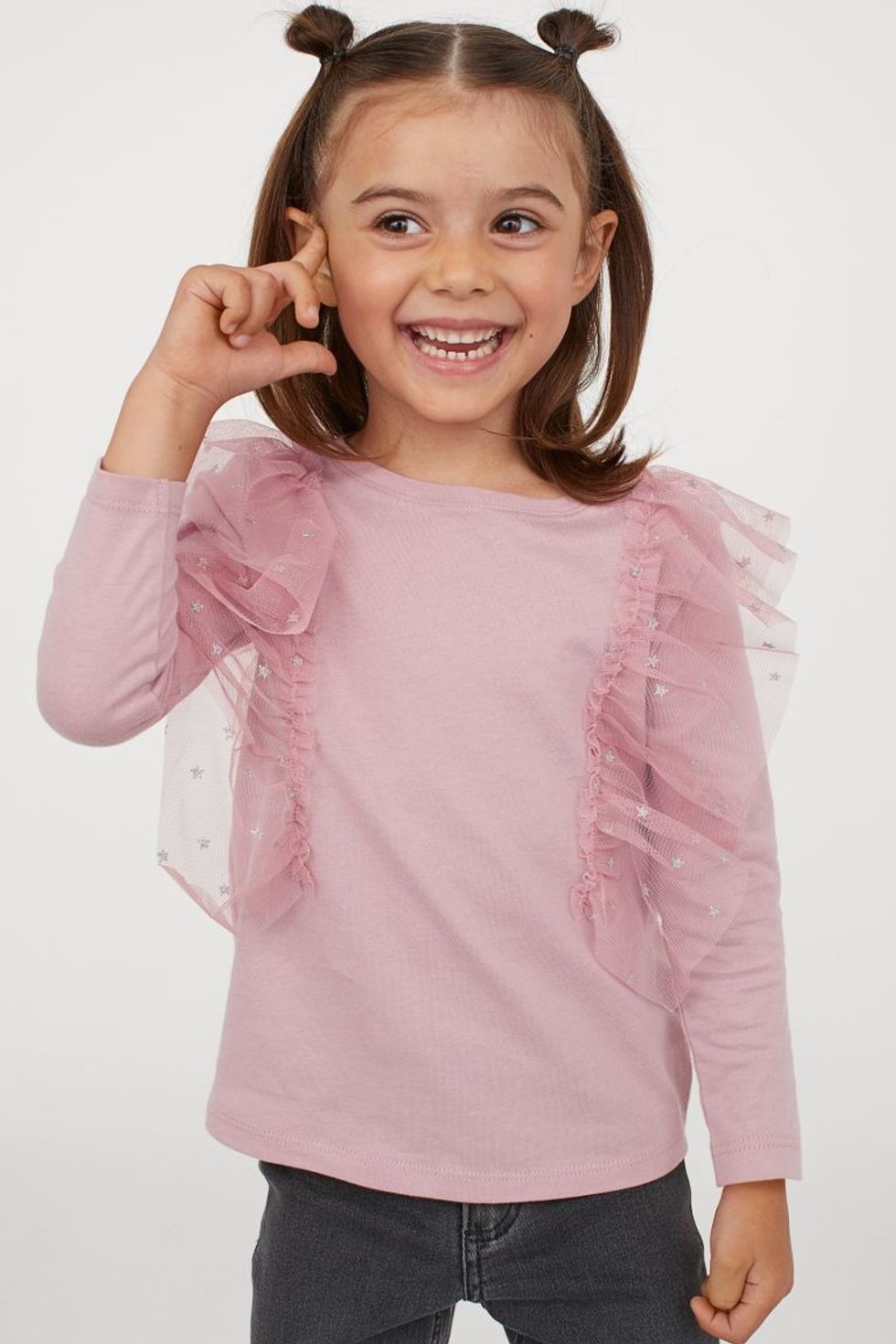 The power shoulder trend is cool for everyone this year — kids included. Gift this ruffle-accented blouse (complete with glittery metallic stars) to the one who isn't afraid of making a statement.