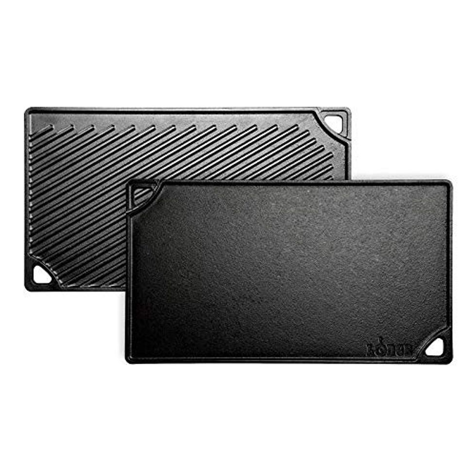 The fresh-grilled goodness doesn't have to end in winter. This cast-iron Lodge grill fits over the stovetop and is perfect for hamburgers, hot dogs, kebabs, and more. The griddle side is excellent for cooking Saturday morning breakfast, and cleaning just one pan is a bonus. Plus, this two-in-one tool lets you grill steaks on one side and flip pancakes on the other.
