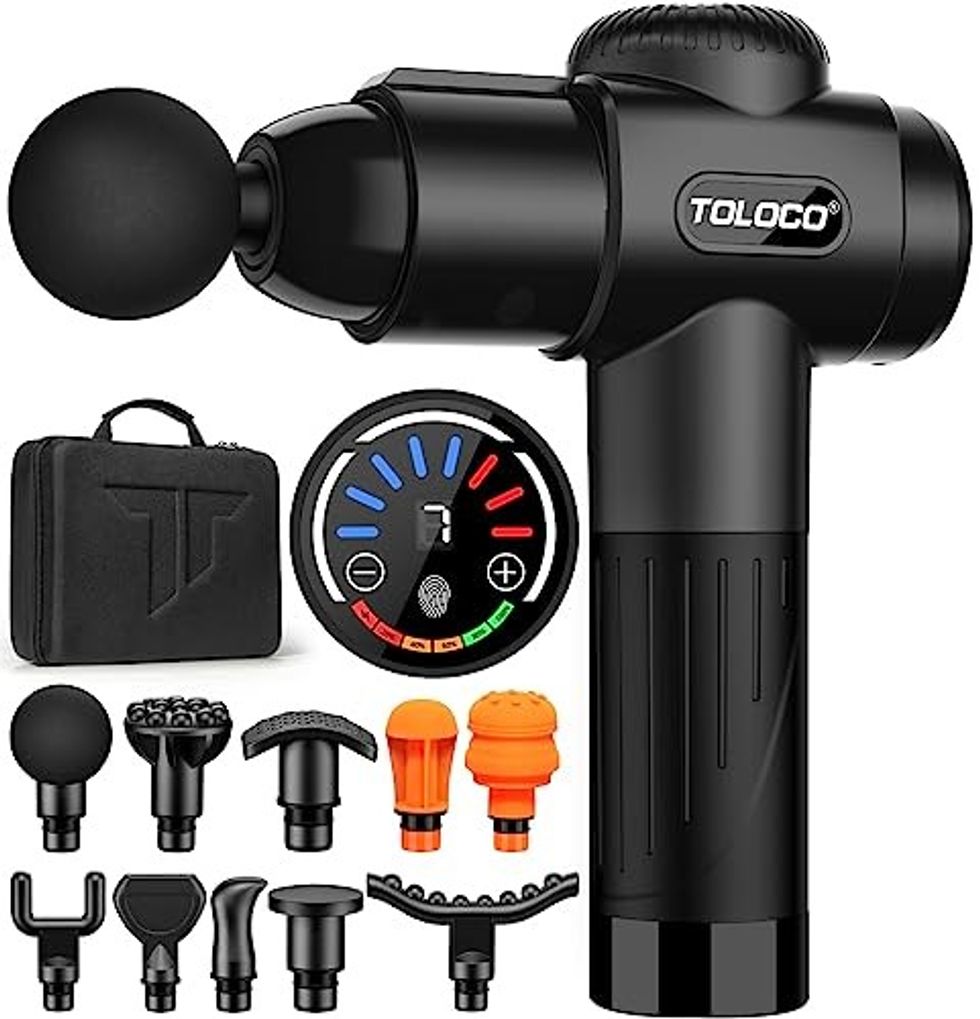 Athletes, runners and yogis alike will use this Massage Gun on repeat. It includes ten different massage heads that target various parts of the body and offers seven intensity levels.