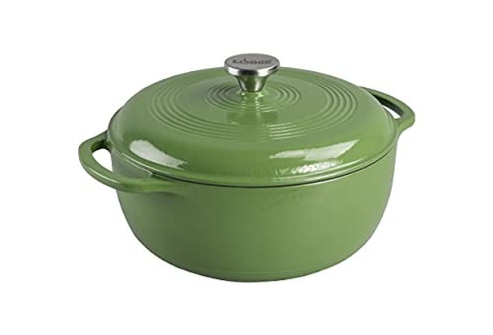 We didn't realize how much we were missing out on before using this Lodge dutch oven. We've made our favorite stews, pastas, and even baked sourdough in it. The porcelain enameled interior resists sticking and provides a delicious caramelization to dishes. It's safe for all cooktops and can easily be transferred to the oven, making it the most versatile piece of cookware in our kitchen.