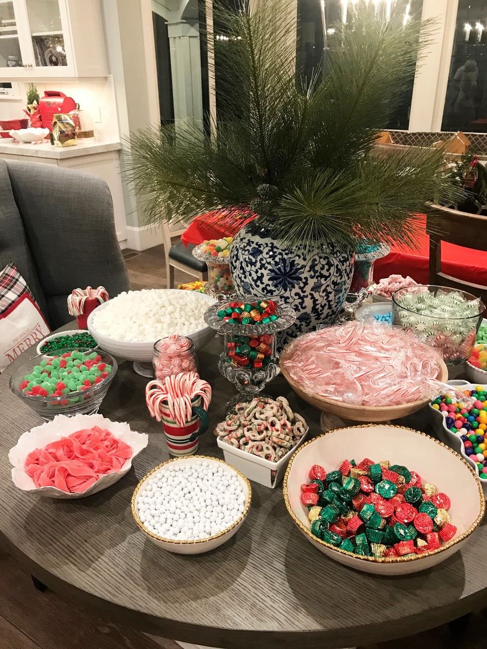 4. Candy, Candy, Candy: Wow your guests with an over-the-top decorating station overflowing with an assortment of decorating supplies. Display them in festive bowls or on platters so everyone can see their options. We love shredded coconut (snow), mini marshmallows, powder sugar, pretzels, candy canes, licorice, gumdrops, cereal, chocolate, wafers, sprinkles, and peppermints, to name a few.