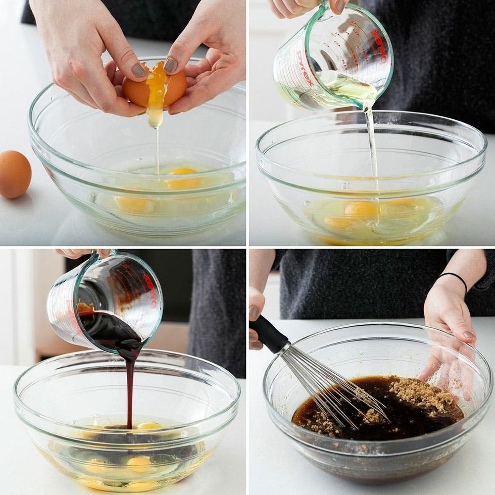 1. Preheat oven to 350 degrees F. In a large bowl, combine eggs, canola oil, molasses, brown sugar, and vanilla. Whisk to combine.