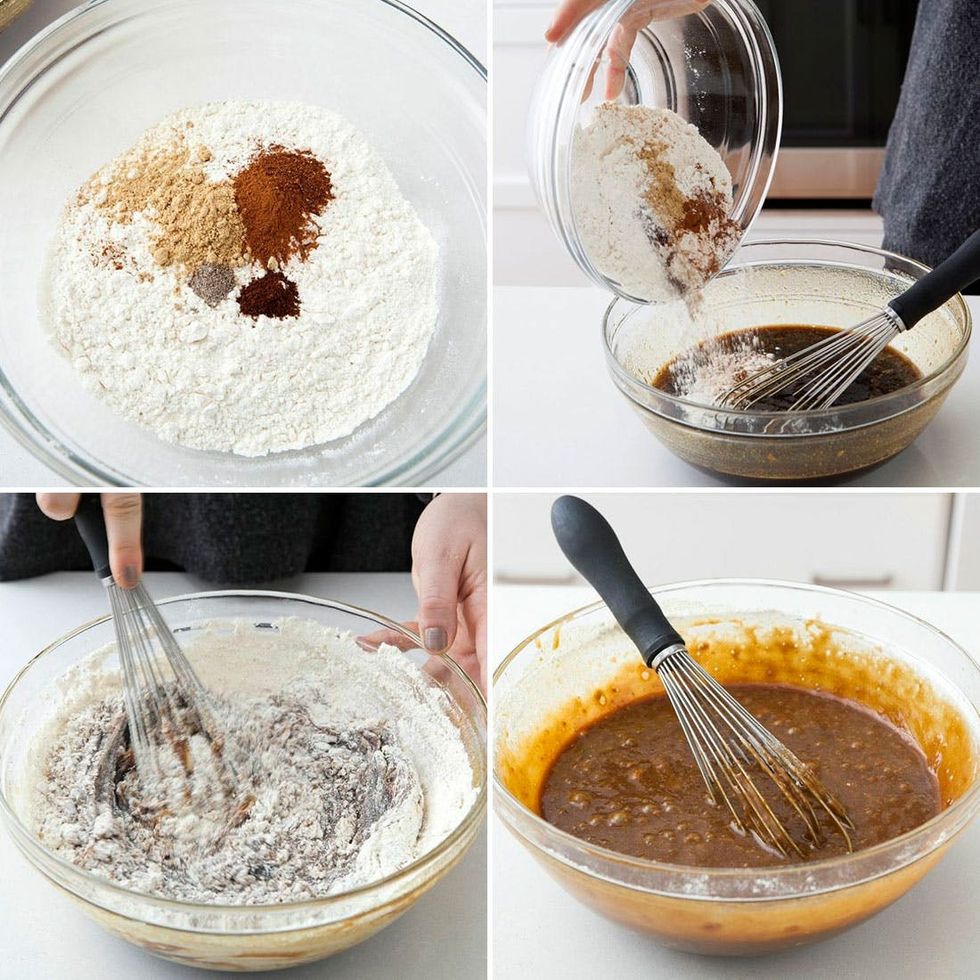 2. In a separate bowl, combine flour, baking soda, baking powder, ginger, cinnamon, cloves, nutmeg, and cardamom. Slowly whisk the dry ingredients into the wet ingredients.