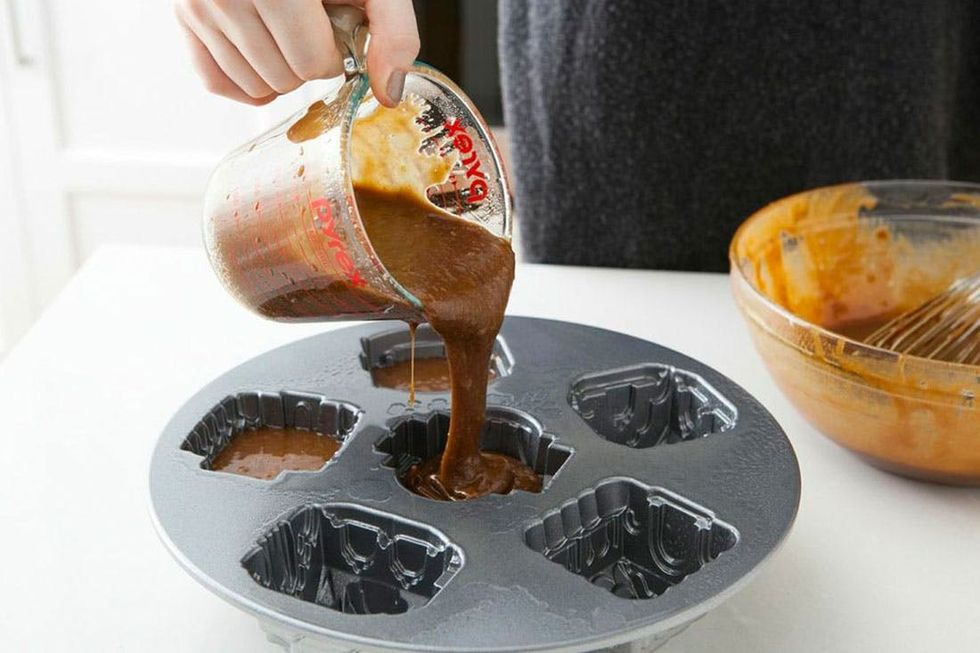 Pour batter into the greased cake pan. Bake for 30 minutes. Let cool. Carefully remove each cake from the pan. Dust with powdered sugar.