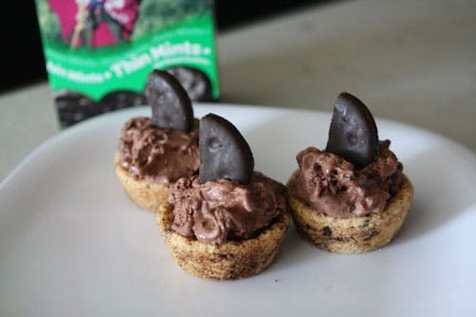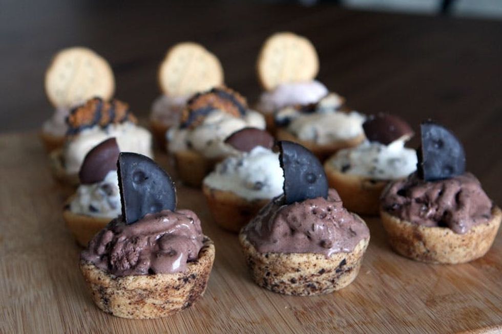 Looks like one Samoa garnish is down for the count, but how adorable are these ice cream cookie cups?