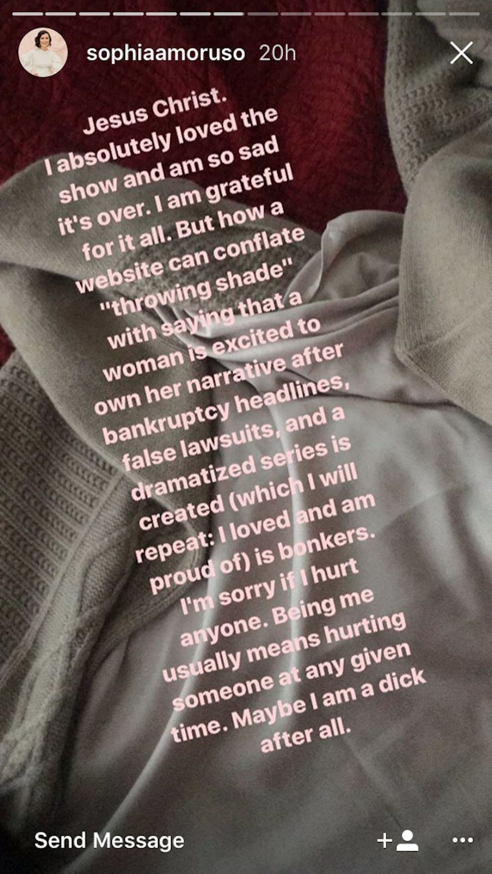 But don’t mistake her relief for shade: She posted a second story to clear any air for followers who might have any inkling to dramatize her initial response. “I’m sorry if I hurt anyone,” she wrote. “Being me usually means hurting someone at any given time. Maybe I am a d*ck after all.”