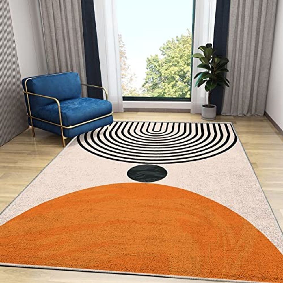A rug is a perfect warm to add a sense of warmth to your floors. And we love how unique and eye-catching this modern rug looks. The bold orange tones are perfectly complemented by the black and white stripe design. This rug is also stain-resistant and so easy to clean.