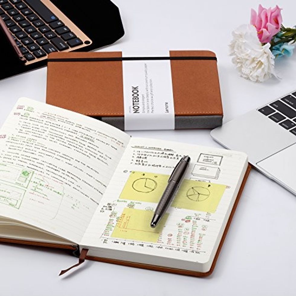 Lemoome's hardcover journal stands out with its robust 4.8-star rating. It's not just sturdy and well-crafted; it's a steal too. Packed with 180 sheets of wide-ruled paper and a handy pen holder on its spine, it's the ideal companion for jotting down thoughts. Ana raves: "The pages are thick and comfortable to write on. Portable size. The cover is good quality, and I love how it has a band to hold a pen. I would repurchase this in a second!"