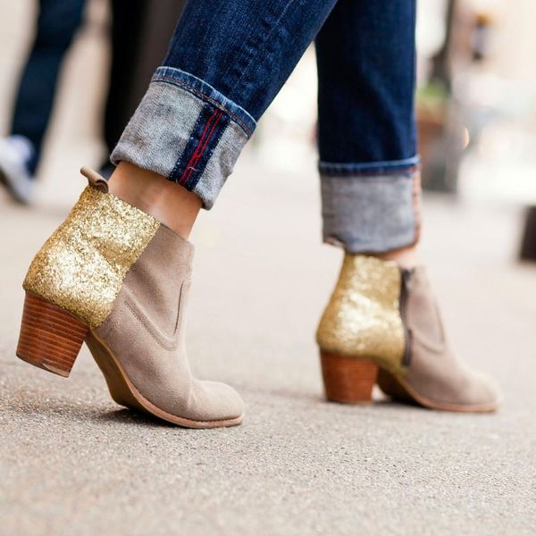 The year was 2011. Barneys was peddling a pair of boots that every girl on earth wanted. They had a little heel. The area right above the heel was blinged out in sparkly gold glitter. And they had a price tag that read $595. Hearts sank. Then, the makers of the world realized what makers realize on the regular: “We can totally hack this.” And the rest is history.