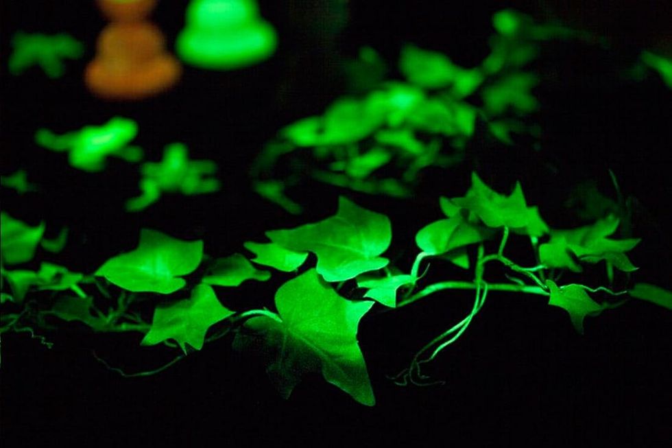 9. Glowing Ivy Decor: Decor that looks totally different in the day than it does at night is a fun surprise for an all day party. We painted these fake ivy garlands with glow-in-the-dark paint. It would be fun to blend this ivy with real greenery in your yard for a truly eerie glow.