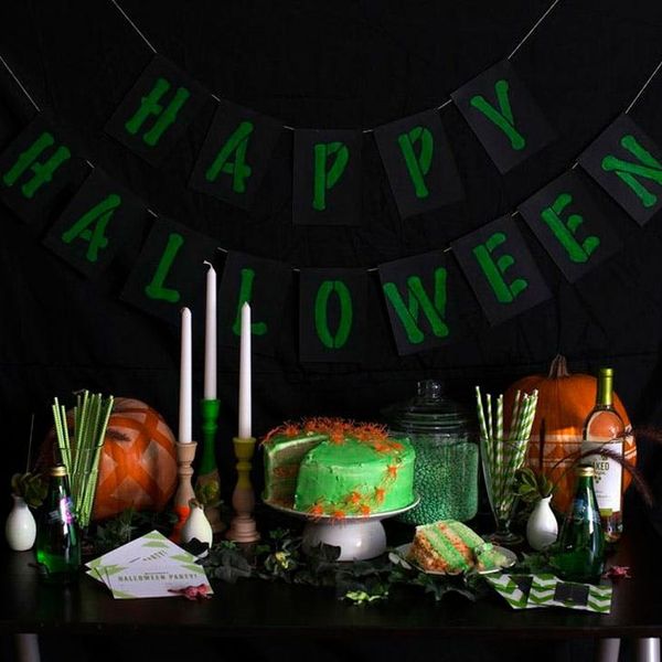 9. Glowing Ivy Decor: Decor that looks totally different in the day than it does at night is a fun surprise for an all day party. We painted these fake ivy garlands with glow-in-the-dark paint. It would be fun to blend this ivy with real greenery in your yard for a truly eerie glow.