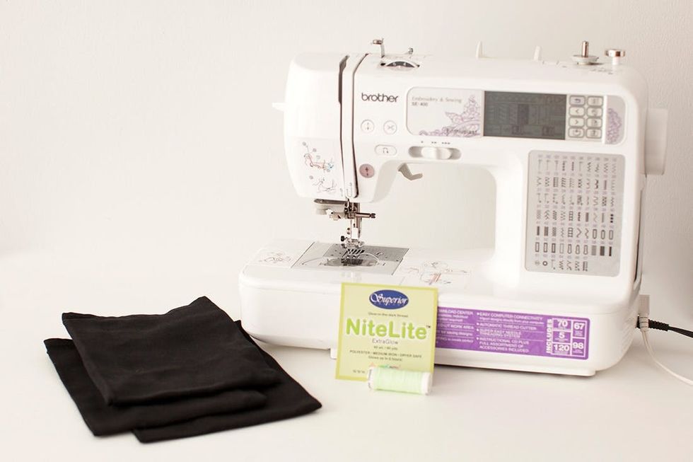1. Thread your sewing machine (and bobbin) with glow-in-the-dark thread.