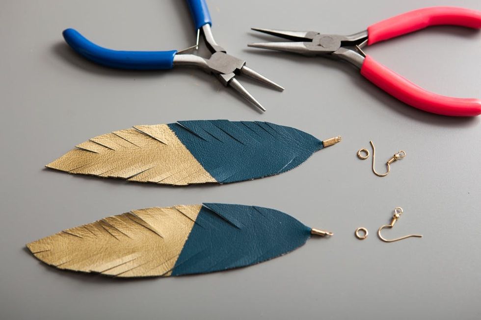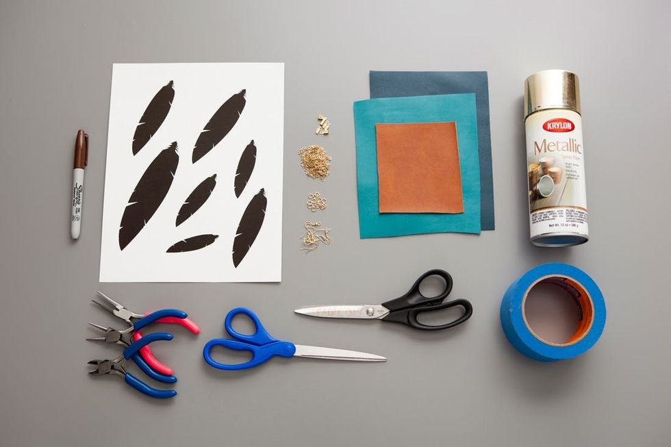 For today’s DIY gift idea, we turn to the life of the wanderer. Inspired by all the boho accessories we’re seeing in just about every store we walk by, we created a trio of leather feather-shaped earrings, dipped in gold.