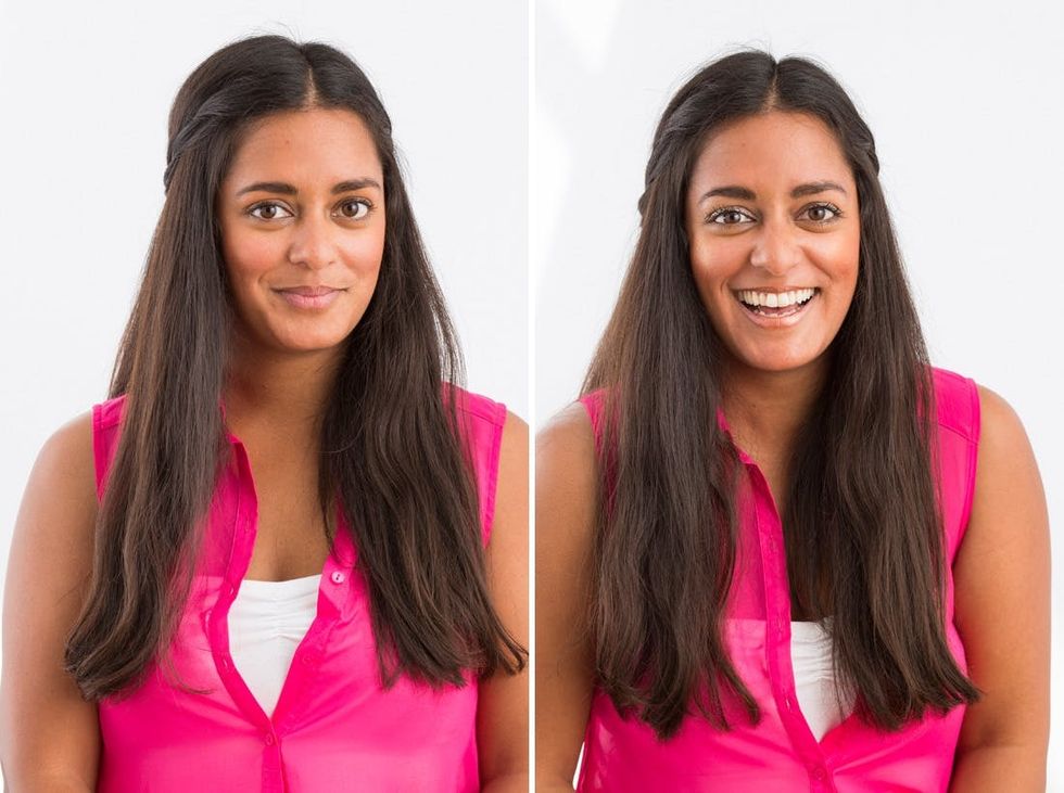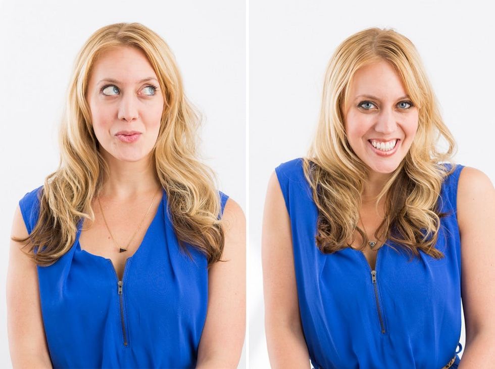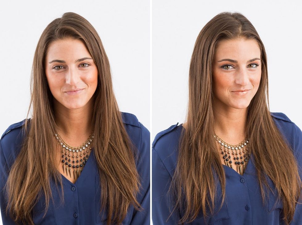 On the left, Krystle rocks a perfectly natural daytime look. On the right? A gal that is ready to hit the town! :)