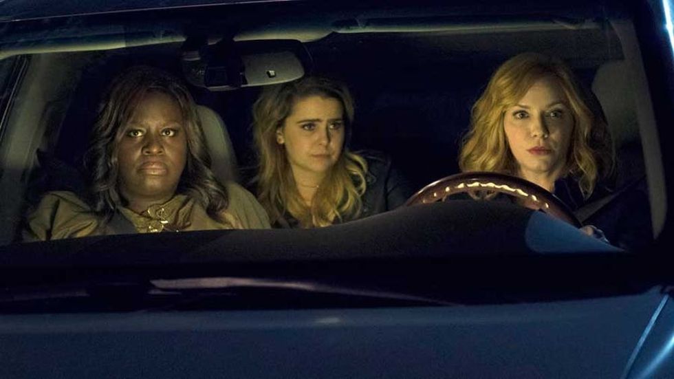 First off, the drug dealers want back all the money that the ladies stole from the Fine ‘n Frugal. Ruby (Retta) spent some of hers already on her daughter’s kidney medication, and Beth (Christina Hendricks) made a mortgage payment so she wouldn’t lose her house. Annie (Mae Whitman) also made some pretty large purchases (a Porsche, a laptop) but was presumably able to sell those things for a decent amount. But they’re still short and time is running out to get Rio (Manny Montana) the rest of his money.