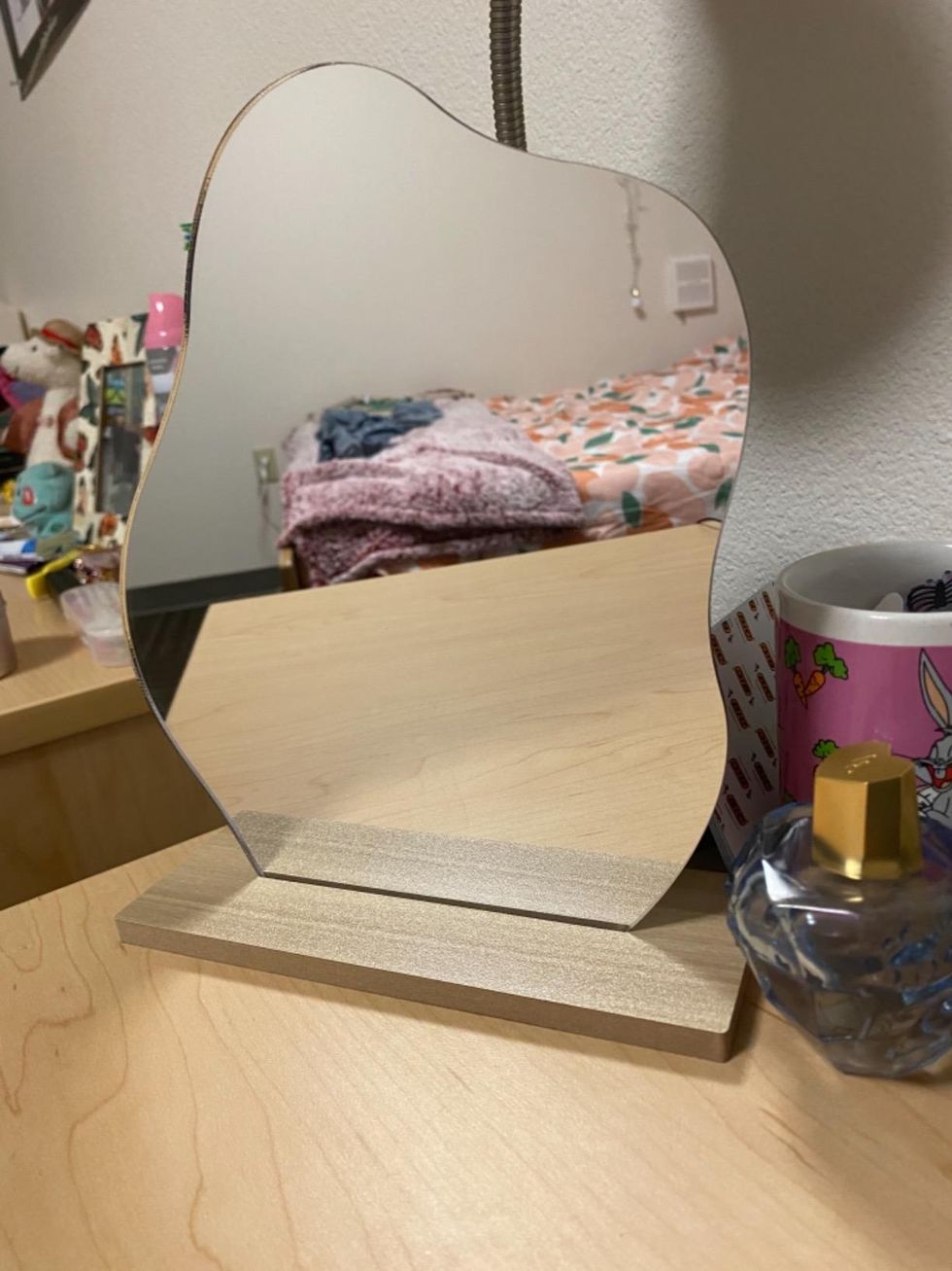 Amazon is clearly the place for luxury home decor on a budget, because this vanity mirror looks like it came from a high-end designer. The unique shape and wooden base make it double as a statement decor piece that everyone will be asking you about.