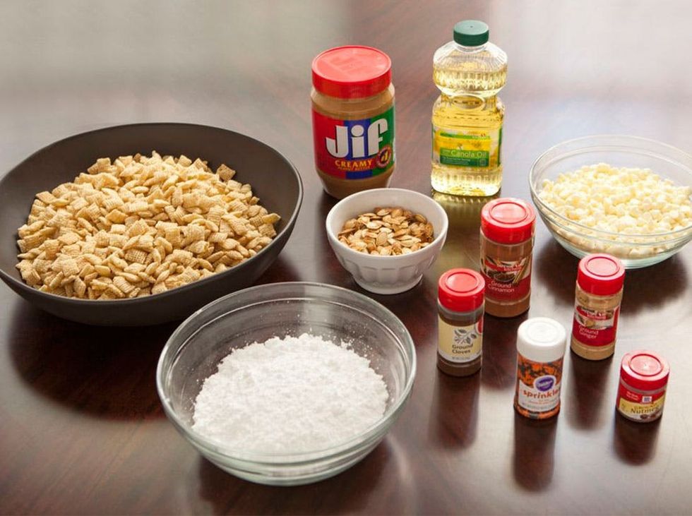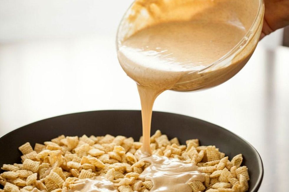 Place the Chex in a large bowl. Pour the chocolate-peanut butter-spice mixture over. Add the pumpkin seeds.