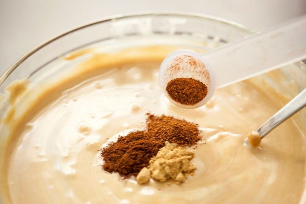 2. Add the cinnamon, ginger, cloves, and nutmeg to the chocolate-peanut butter mixture. Stir.