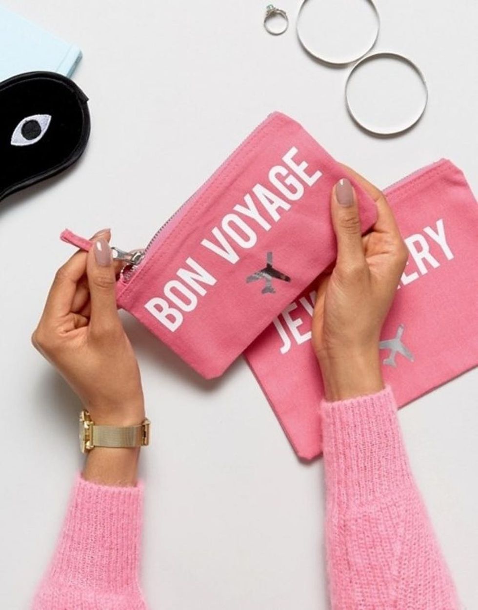 15. Crazy Haute Travel Pouch Set With Bon Voyage And Jewelry Logo ($36): Your favorite alumni can say goodbye to untangling accessories, thanks to these bags. Also, they’re pink and super cute — a win-win.