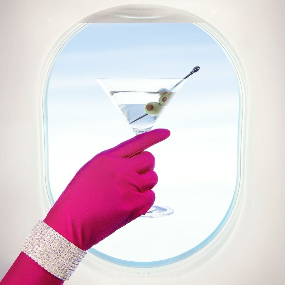 Each image features an warm wearing the icon’s signature arm candy, holding up their drink of choice in an airplane window. The collection was shot 30,000 feet in the air and is inspired by legends such as a Madonna with “The Virgin” and Marilyn Monroe with “The Blonde.”