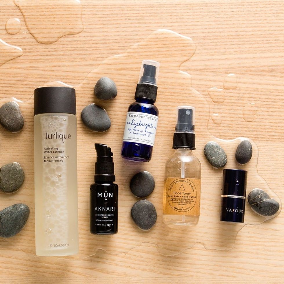 Minimal Pores + Brightening: NU Reveal Organics Face Toner ($28) Apply to a clean face to restore your skin’s natural pH levels.