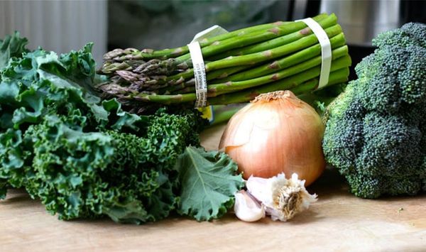 Saute onion and garlic in a little olive oil over medium heat until soft. Stir in chopped green veggies, add broth, and simmer on low heat until veggies are soft. (Health tip: Avoid boiling to retain the maximum amount of nutrients in your veggies.)