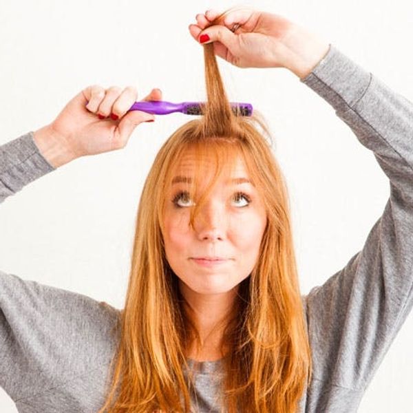 1. You are going to take your bangs as one section and back comb them. You can either use a back combing comb or a regular brush in very thin small sections until the whole section has been bumped up.