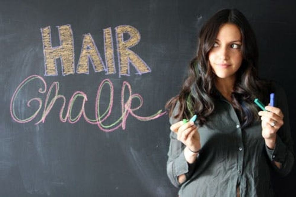 Remember when you were in middle school in the 90s and you desperately wanted to add a Manic Panic blue streak to your hair? Or when Angela Chase on My So-Called Life busted out the Clairol and turned her hair from mousey brown to crimson? Happily, the 90s are back and so is the trend of adding bright bursts of color to your hair. But, we've gotten smarter. This time, fashionistas everywhere are using chalk pastels to achieve the same look, but just for a day or two.