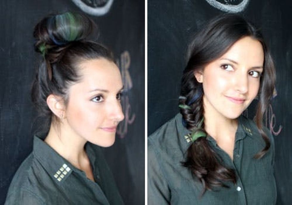 The chalking method is also great for adding a bit of color to classic hairstyles like the side fishtail braid and the sock bun. Don't be surprised if you see colored hair streaks popping up on the ladies of Brit & Co. in the coming weeks! ;)