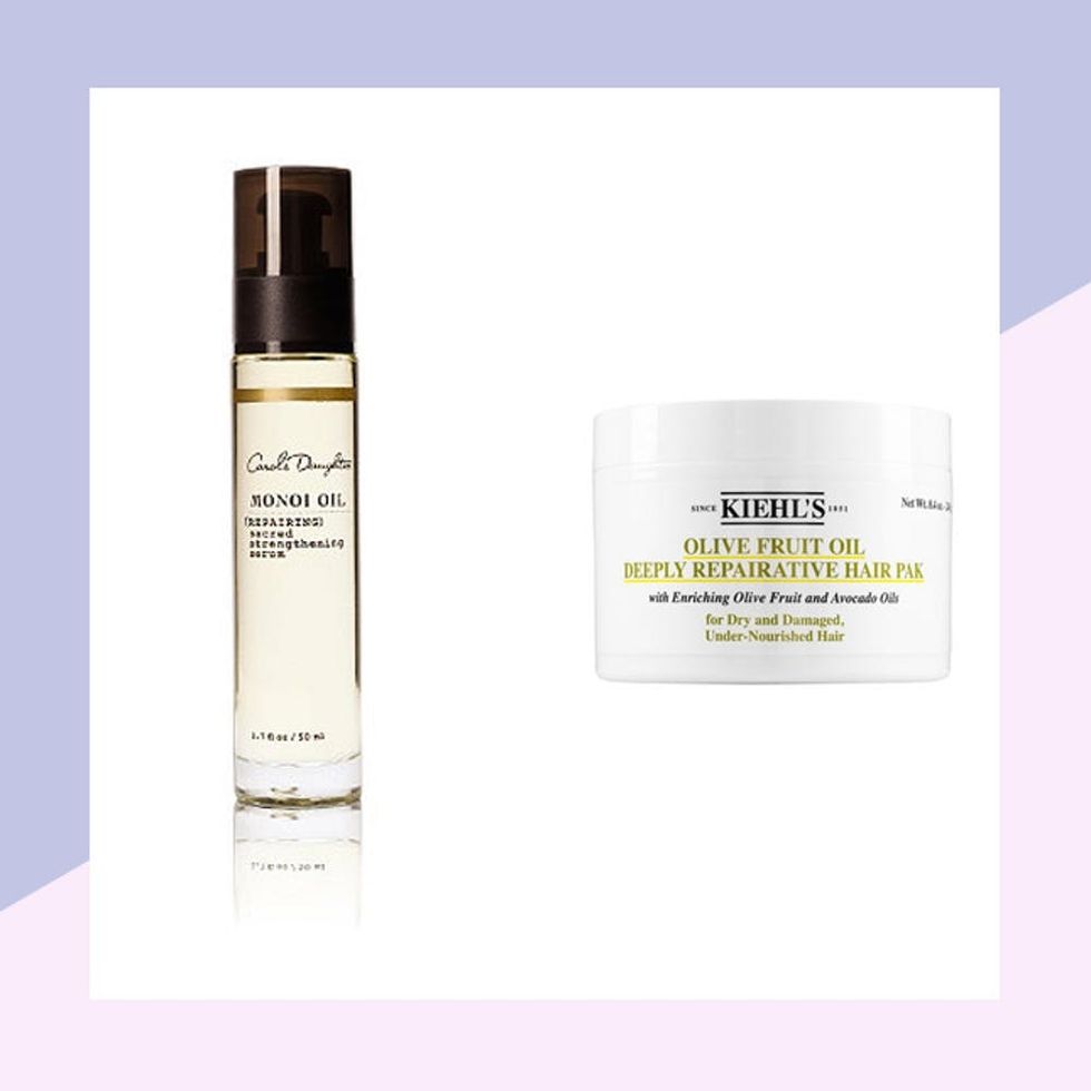 Mix up: Carol’s Daughter Monoi Oil Sacred Strengthening Serum ($30) + Kiehl’s Olive Fruit Oil Deeply Reparative Hair Pak ($25)