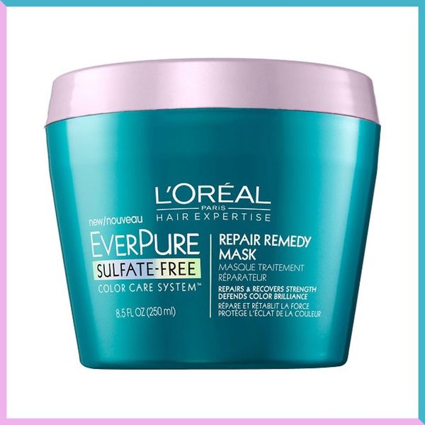 3. L’Oreal Paris Hair Expertise EverPure Repair Remedy Mask ($8): Treating colored hair is a different story entirely; if you use sulfate ingredients and spend time outdoors in the sun, it could gradually fade to that oxidized, orange-y hue. Enter this mask, totally free of harsh sulfates and full of antioxidants. The conditioning blend of acai and goji berries and UV filters penetrate strands and act as a protective coating, preventing your hair from going into pumpkin territory.