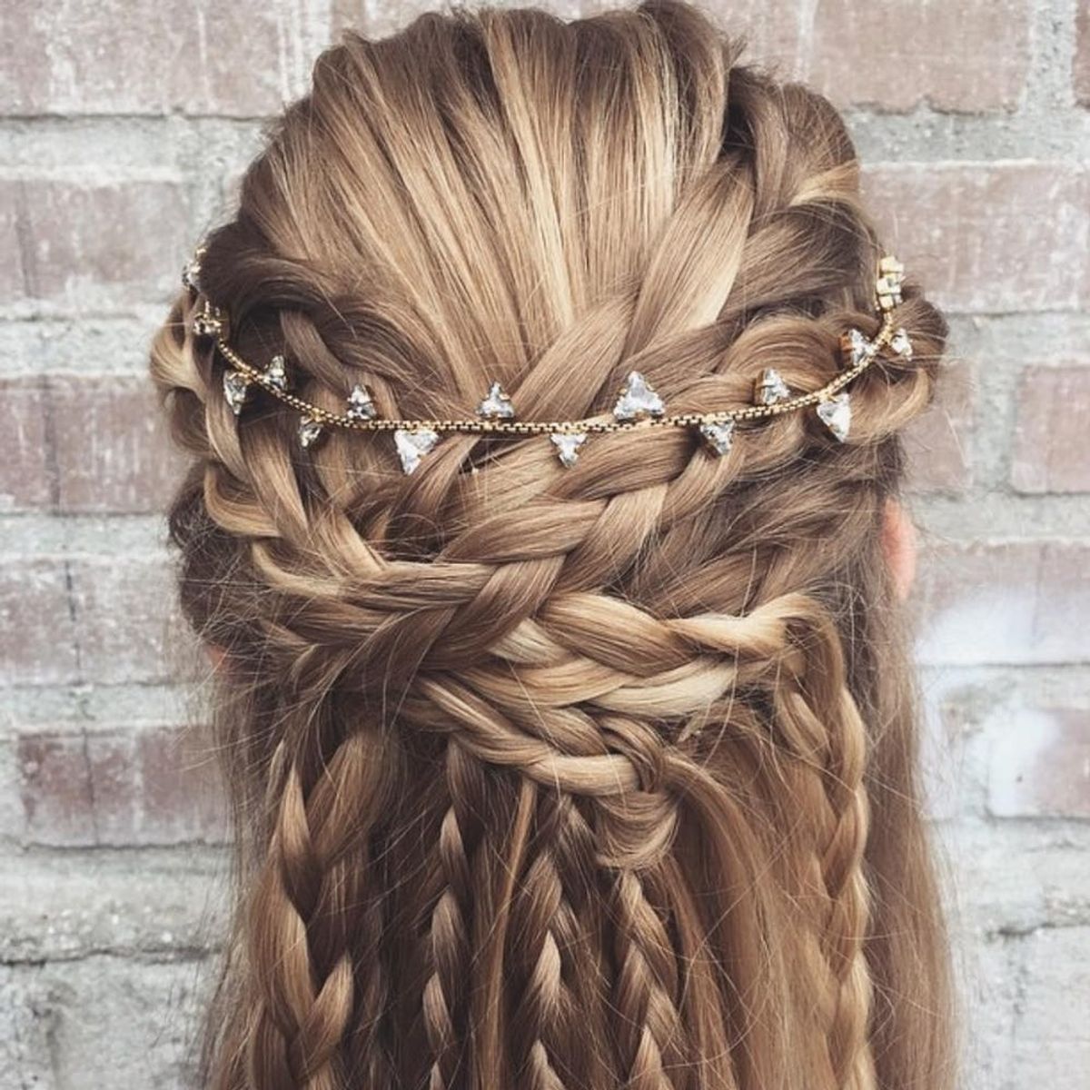 7. Braids and Jewels: It’s your day to shine bright like a diamond. Sport braids for days down your back with delicate hair jewelry that offers just the right amount of bling.