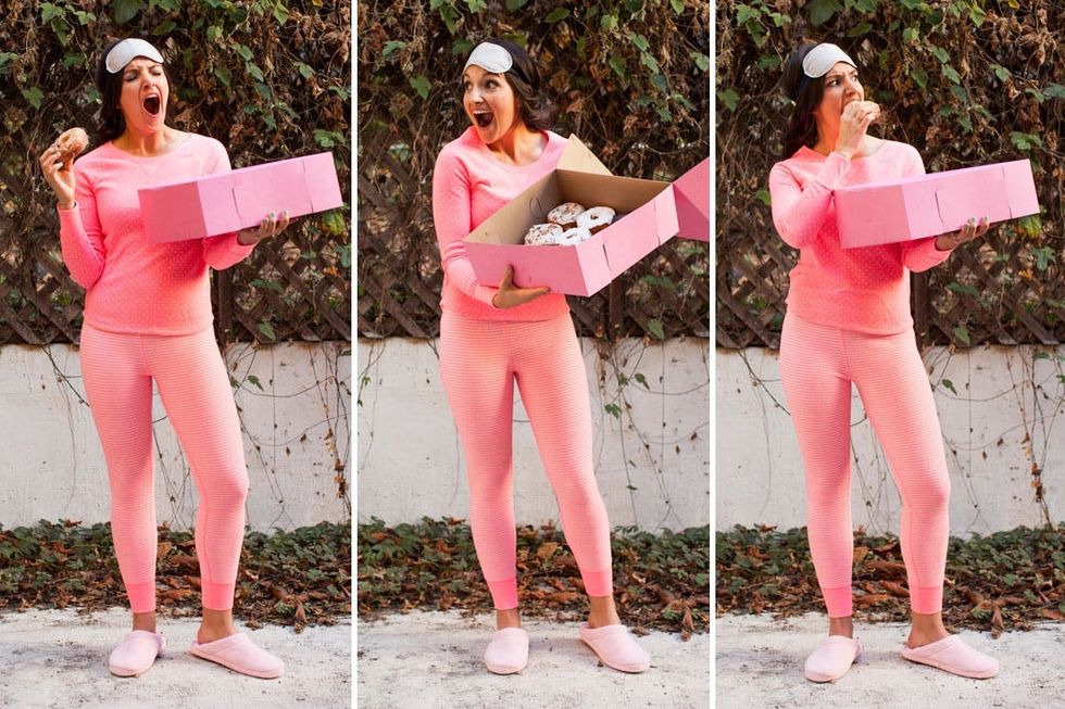 4. Person Waiting in Line for a Cronut: Oh cronuts, oh my. People are legit still waiting in line for cronuts, and our local bakery sells out by 10am every day. I’m not sure a baked good has ever received so much press. We went with a hot pink pajamas to go with the hot pink baker’s box filled with cronuts. Don’t forget, it’s always good to share your cronuts with coworkers.