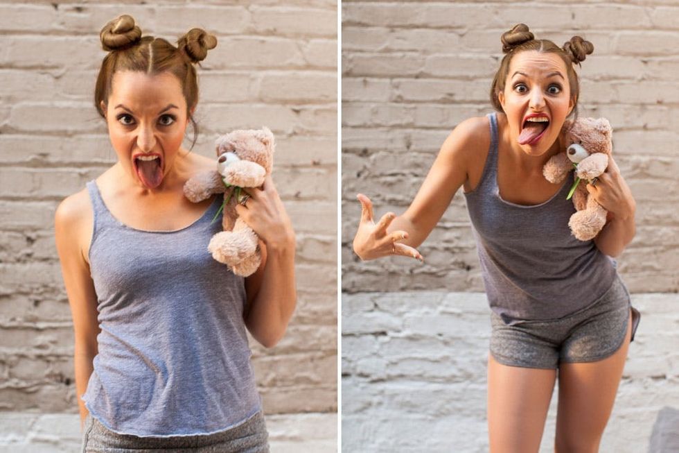 5. Miley Cyrus: And the award for currently-terrible role model goes to… Miley! But how can you not kind of love her deranged dance moves and that insane tongue? If you’re feeling really bold, go for the full bear leotard. For our look, we outfitted Brit in gray shorts, a gray tank, and those signature pigtail buns. But how did we go blond? Spray blond dye from Walgreens, of course.