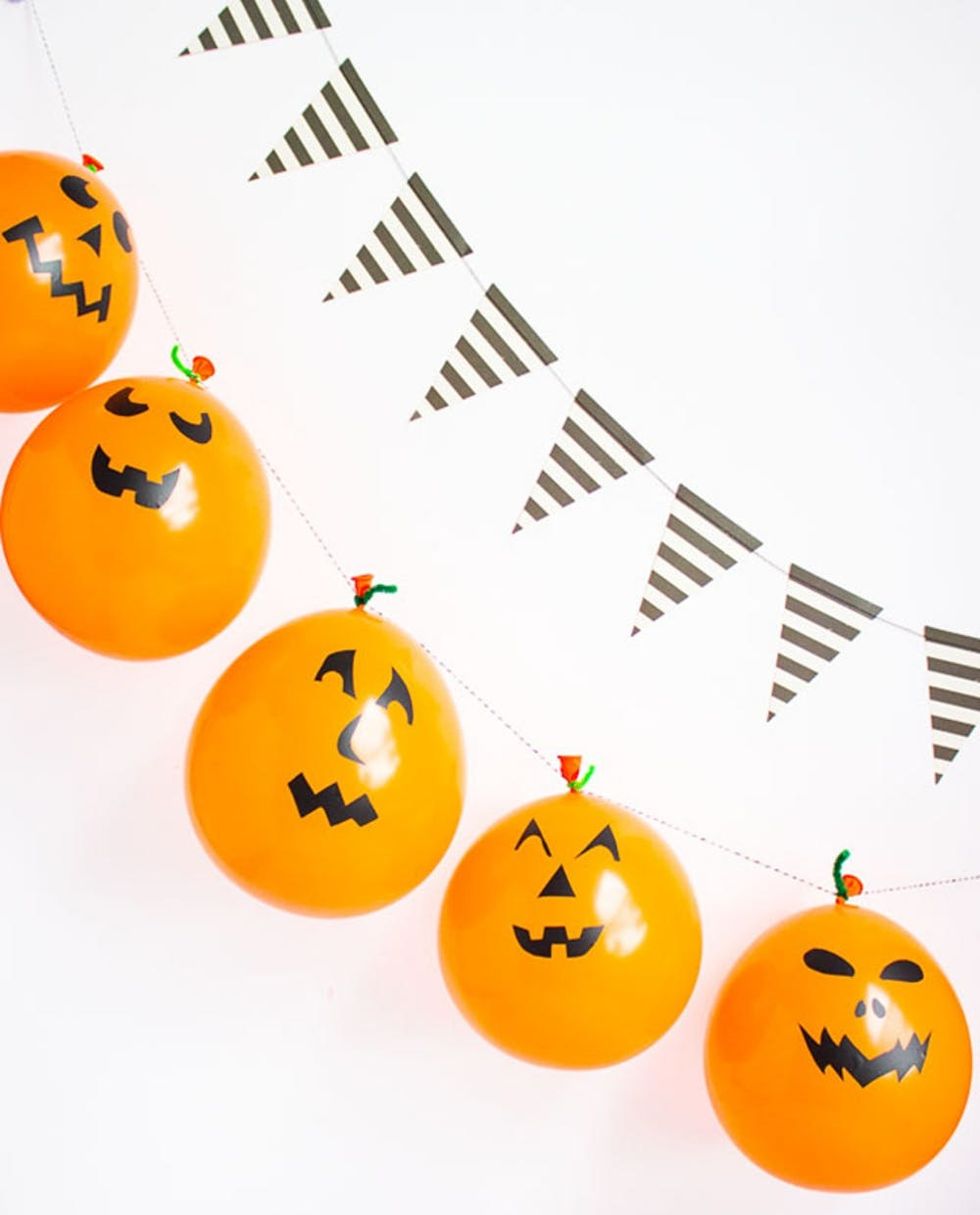 11. Halloween Jack-o’-Lantern Balloon Garland: Upside-down orange balloons make a festive (and affordable!) pumpkin garland. (via Design Improvised)