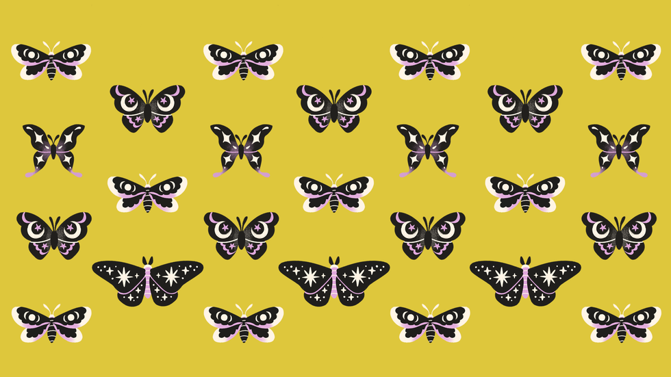 Capricorn's practicality meets spookiness with an eerie moth-themed wallpaper. Fluttering creatures gleaming under a full moon remind us to appreciate the whimsical things in life.