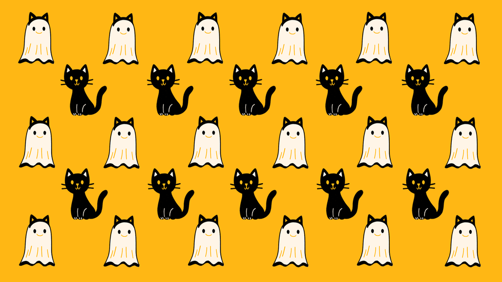 Embrace your dreamy side with a wallpaper featuring black cats and an adorable spirit dressed as a black cat. What a hauntingly beautiful duo for Pisces.