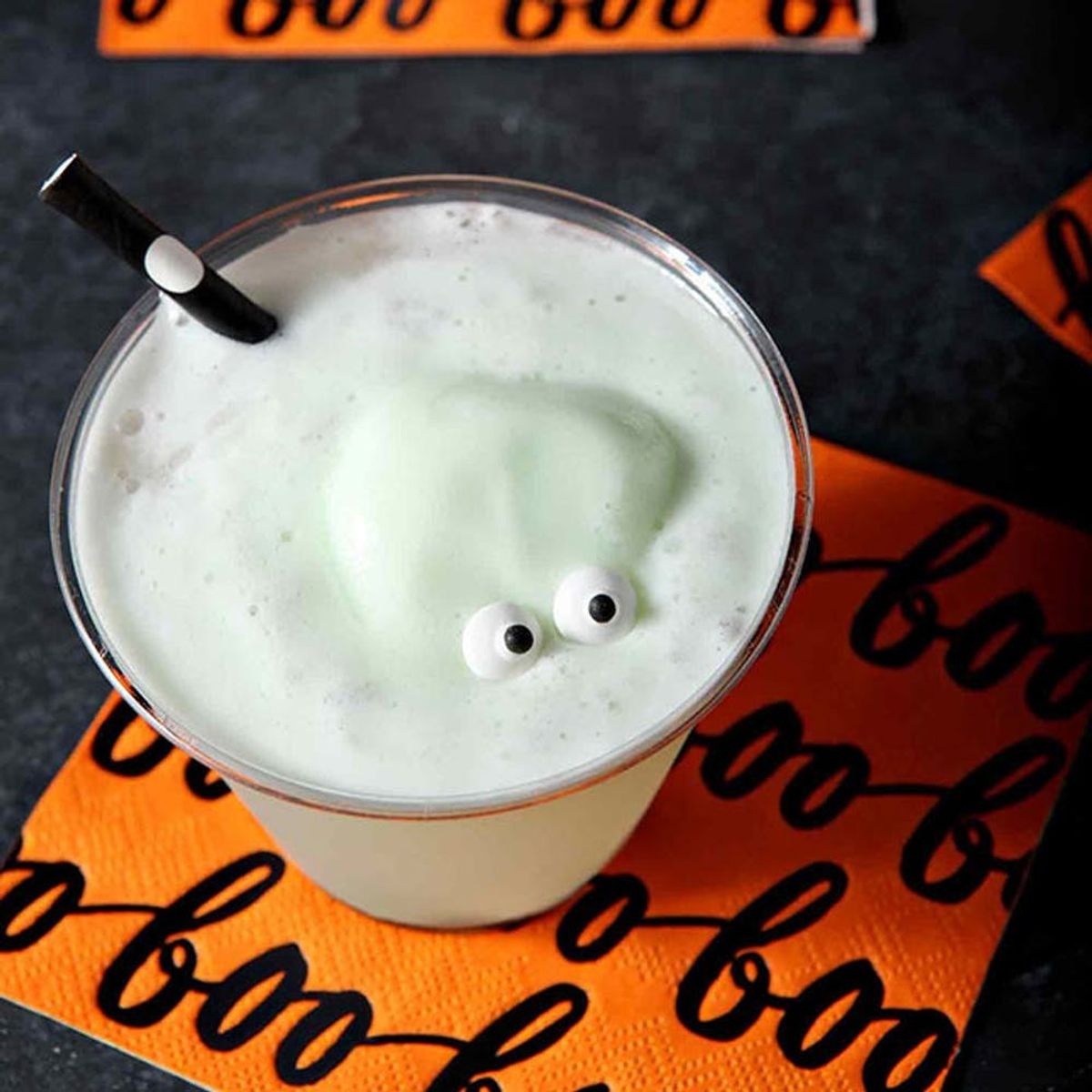 There’s no rule that Halloween mocktails need to be spooky. Some kids shy away from anything that’s remotely scary. If that’s the case, they’ll love this ice-cream-based, magical drink! (via Sparkle Living)